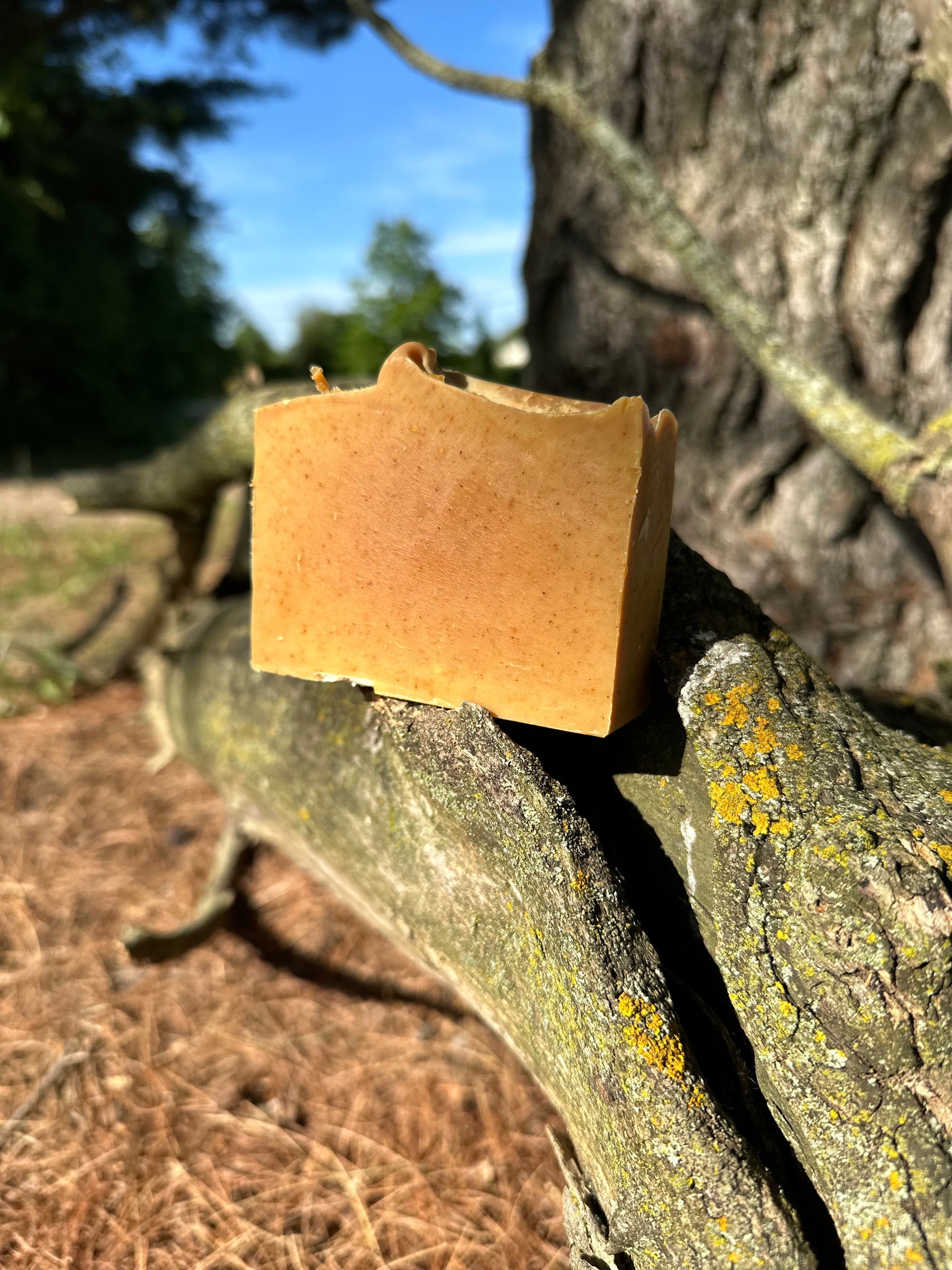 This honey and turmeric bar is formulated for sensitive and inflamed skin! Soothing and has a subtle hint of raw honey.