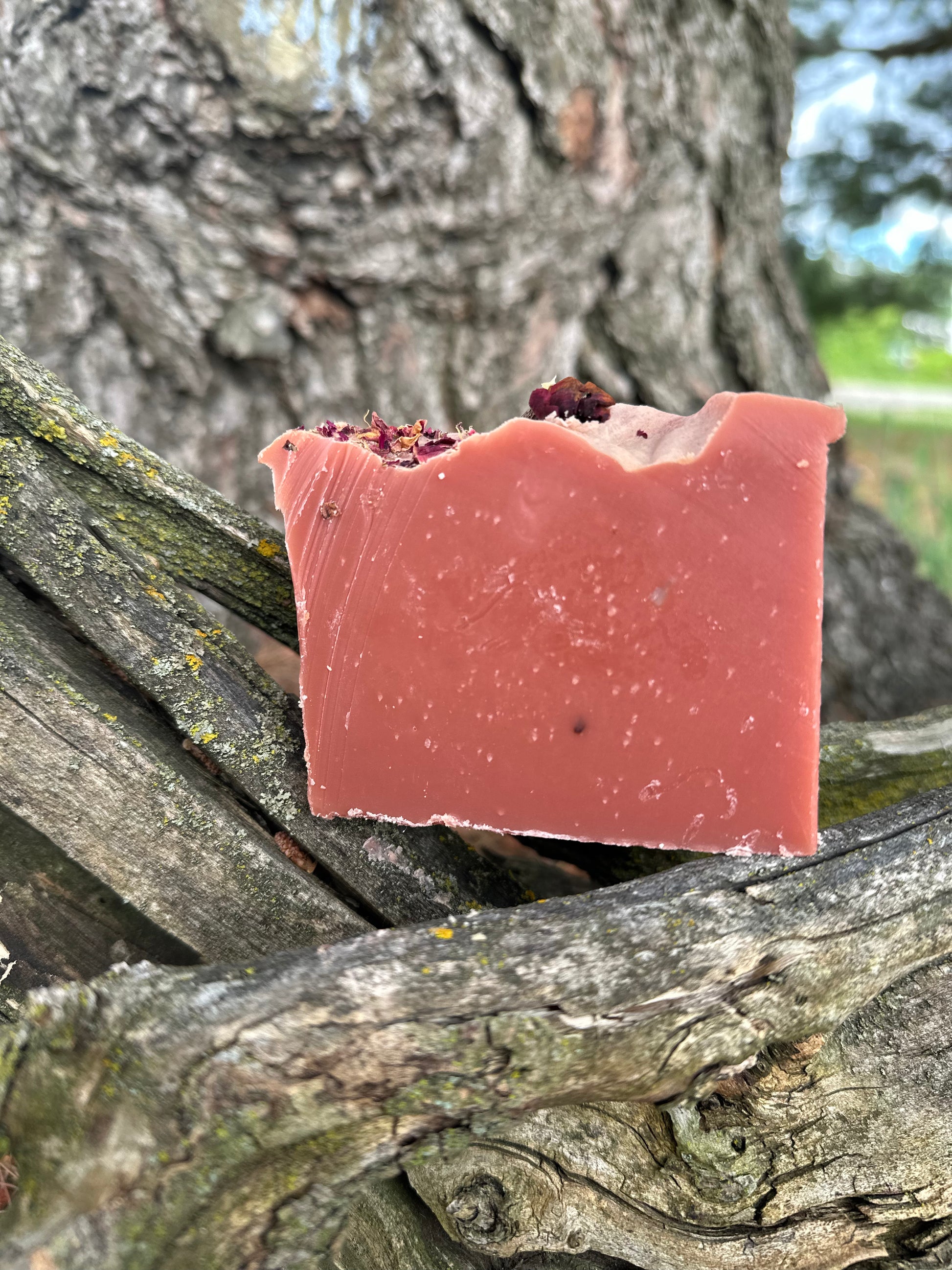 Ingredients: Organic Saponified Oils (unrefined babassu, coconut, mango butter), Rose Clay, Essential Oil/Botanical Extract Blend.