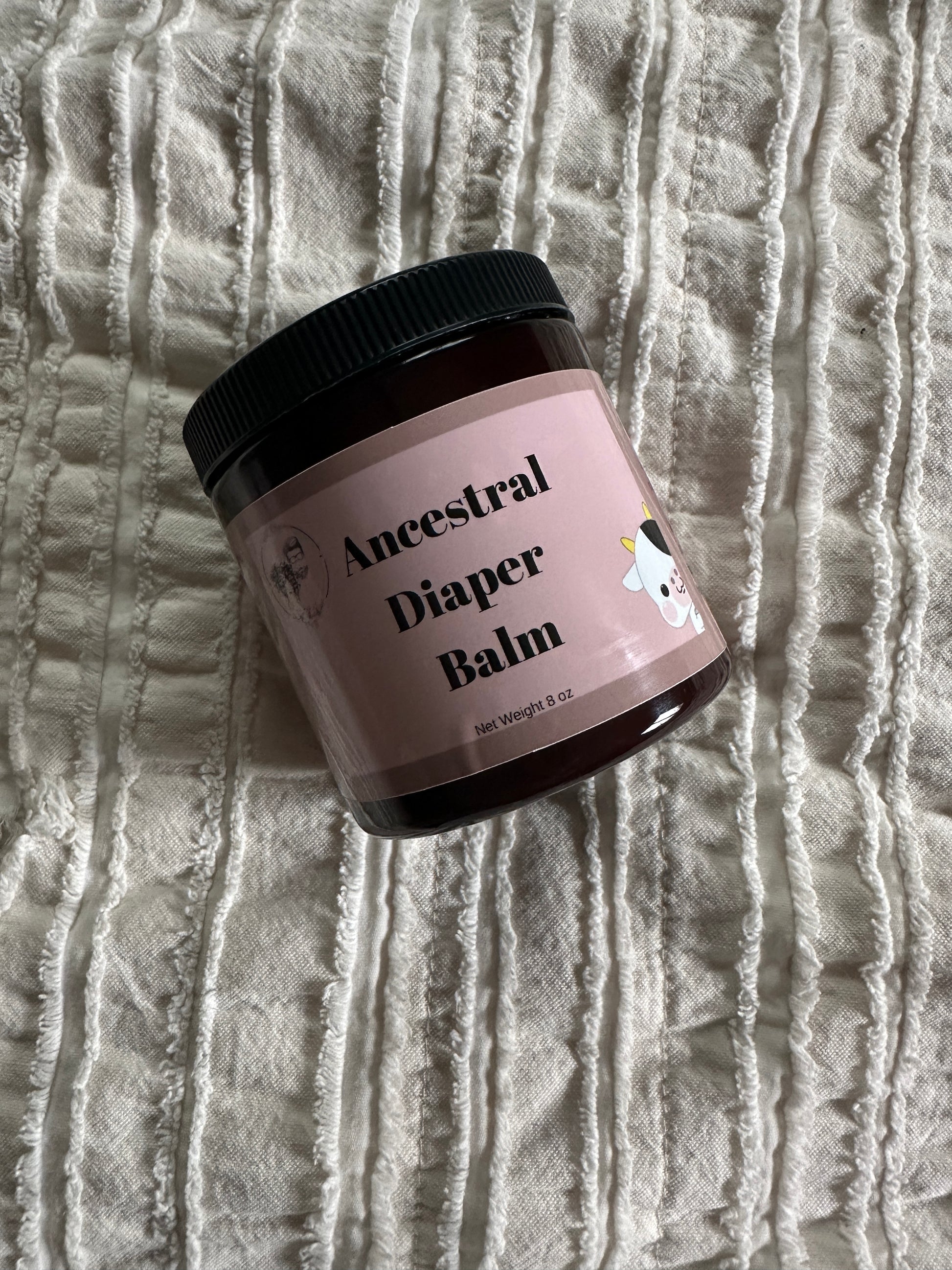 Mom and Natural Health Practitioner formulated diaper cream is made with grass fed and finished tallow, raw shea butter, avocado oil, non nano zinc oxide, and natural beeswax to create a barrier allowing for the skin to heal and be soothed