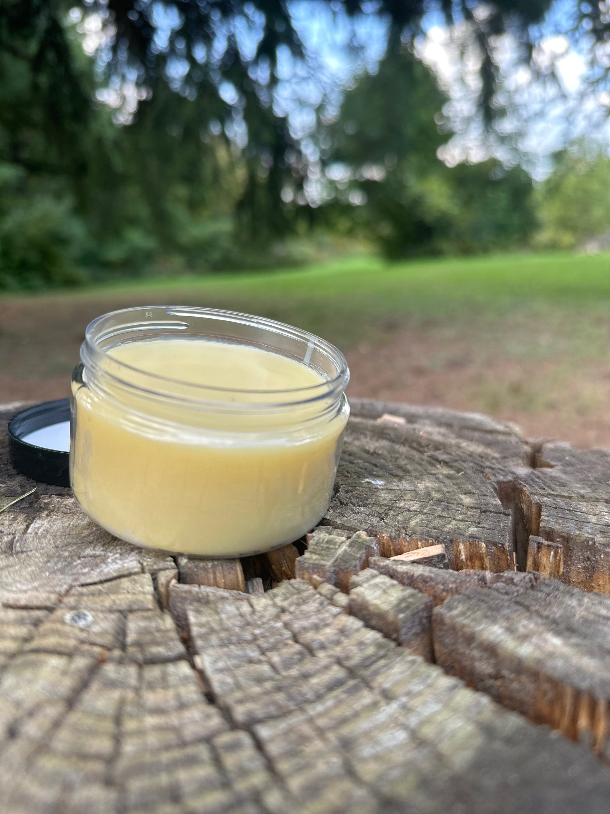 Ingredients: Organic oil blend (Avocado, Raspberry, Castor, hemp seed oil) infused with mullein, rosemary, crab apple, and peppermint, natural beeswax, essential oil blend, menthol crystals.