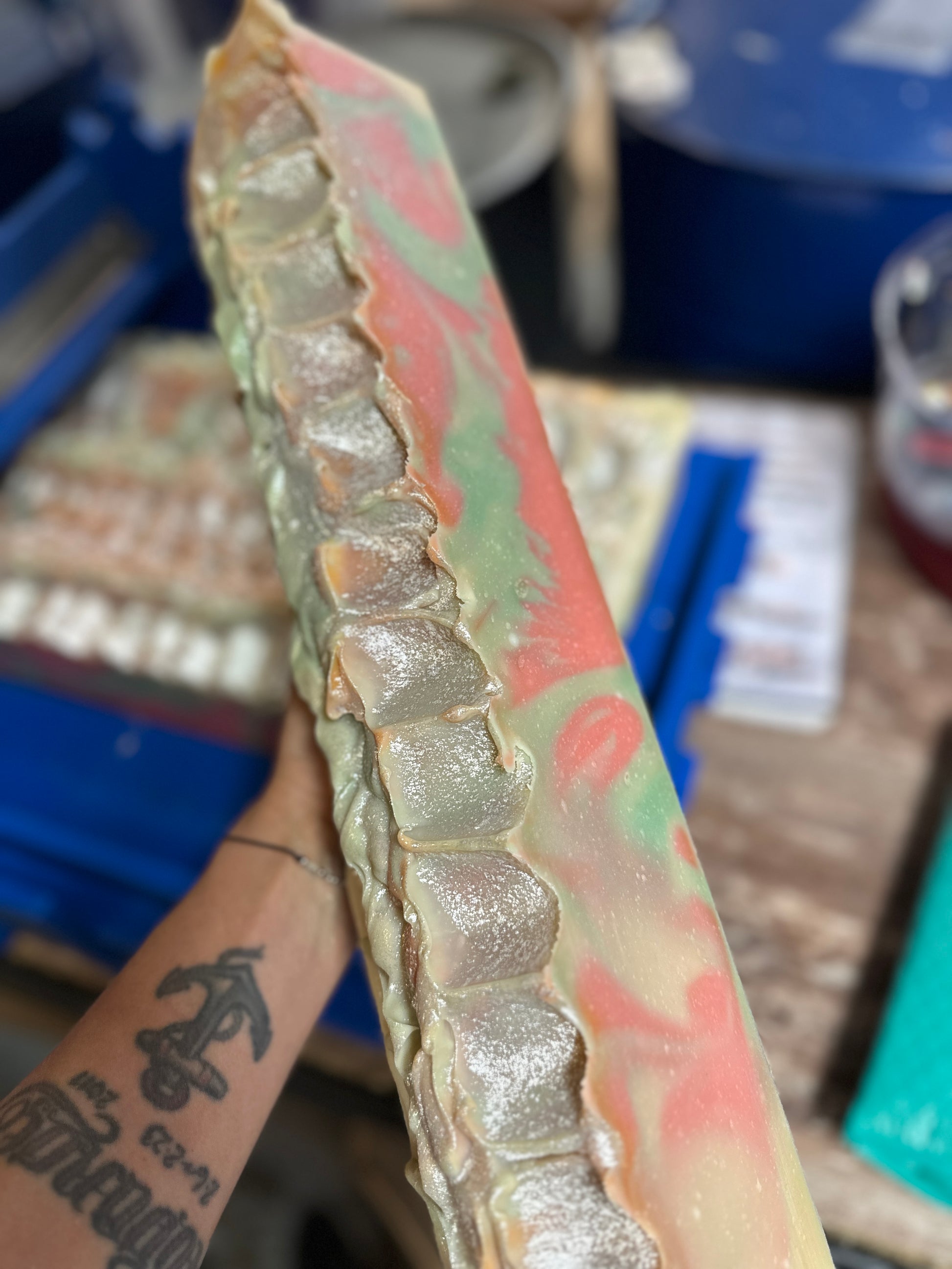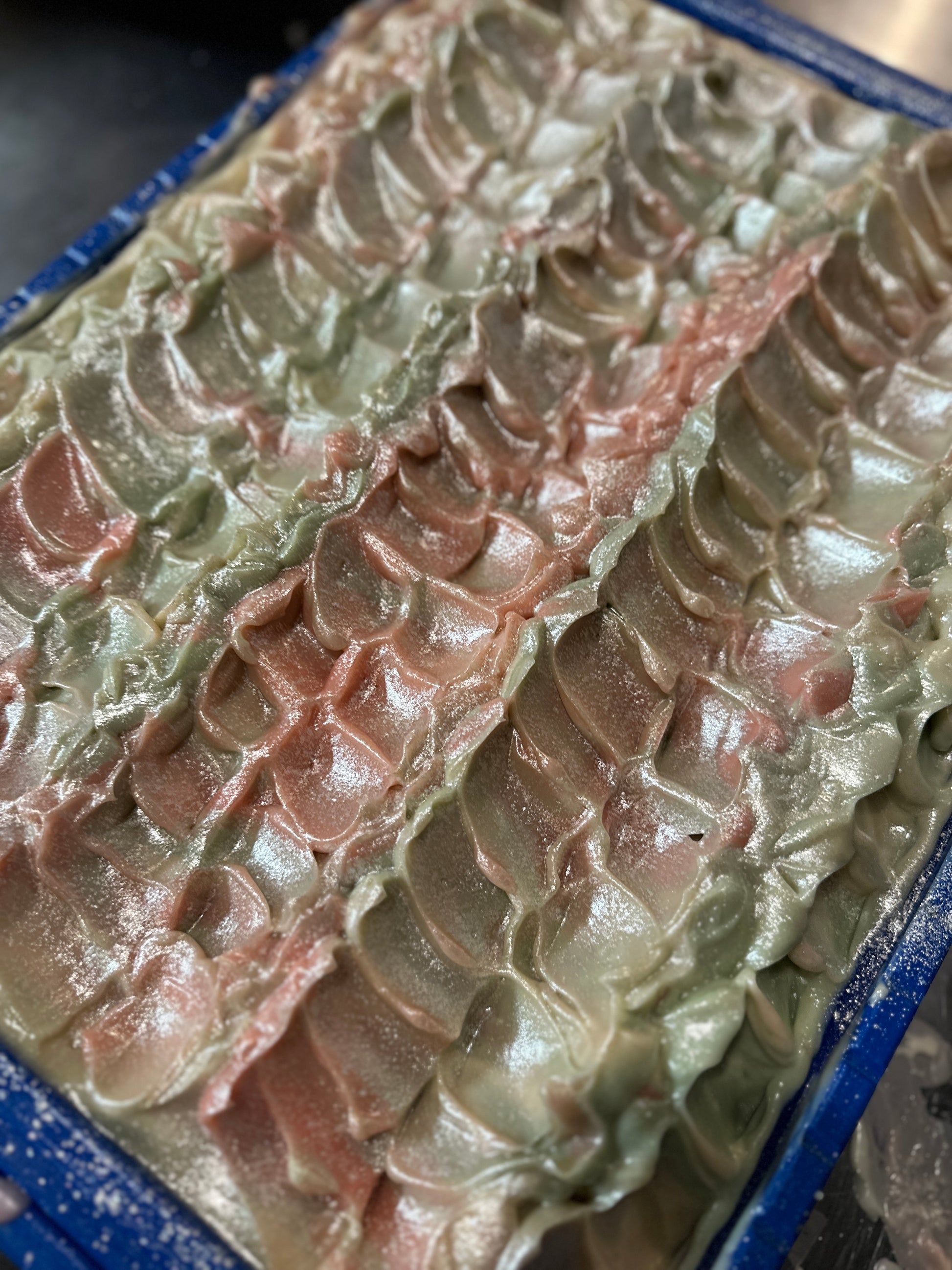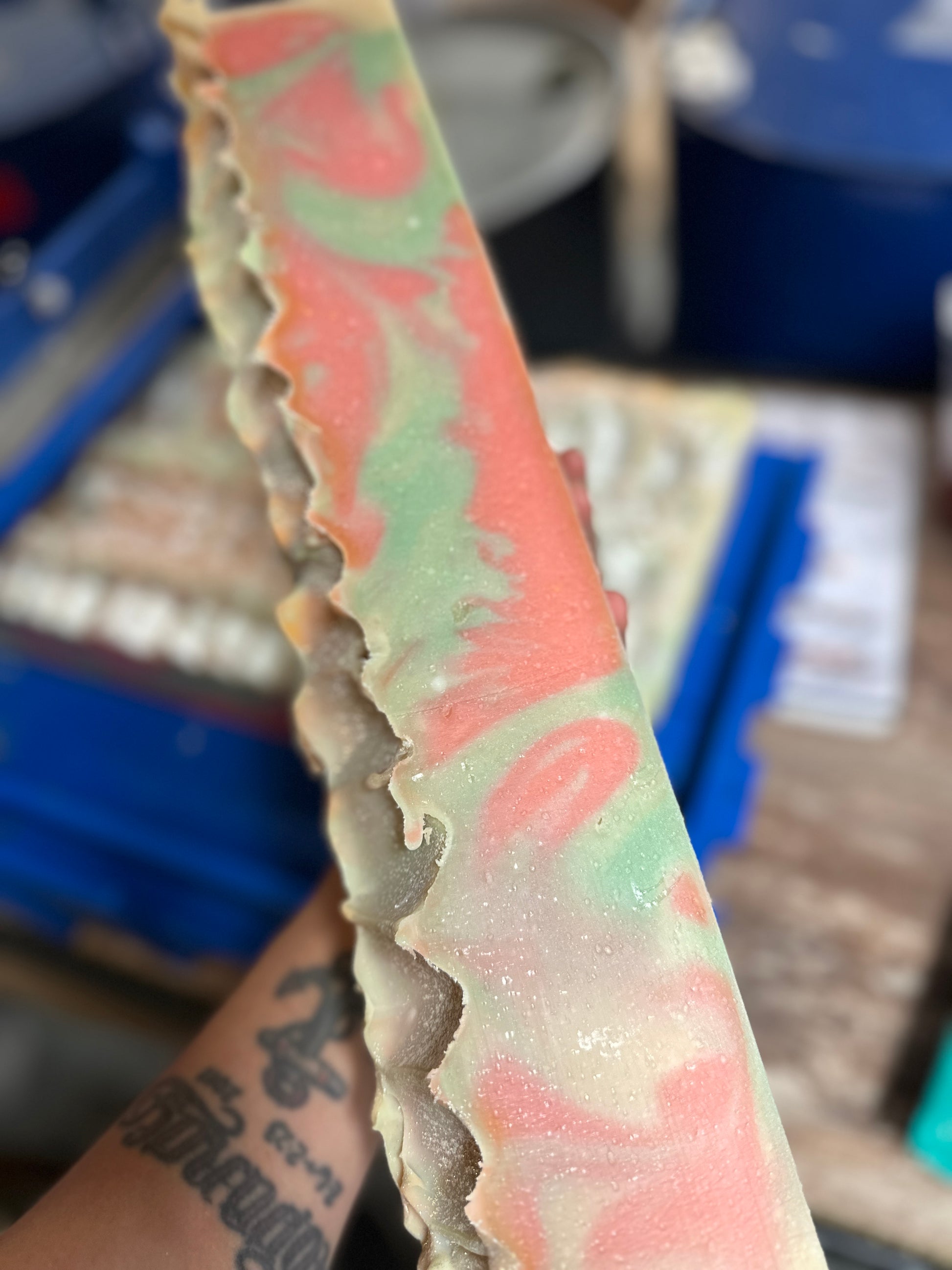 Ingredients: Organic saponified oils (extra virgin olive, unrefined babassu, tallow, sunflower ), sustainable sourced mica, essential oils,extracts