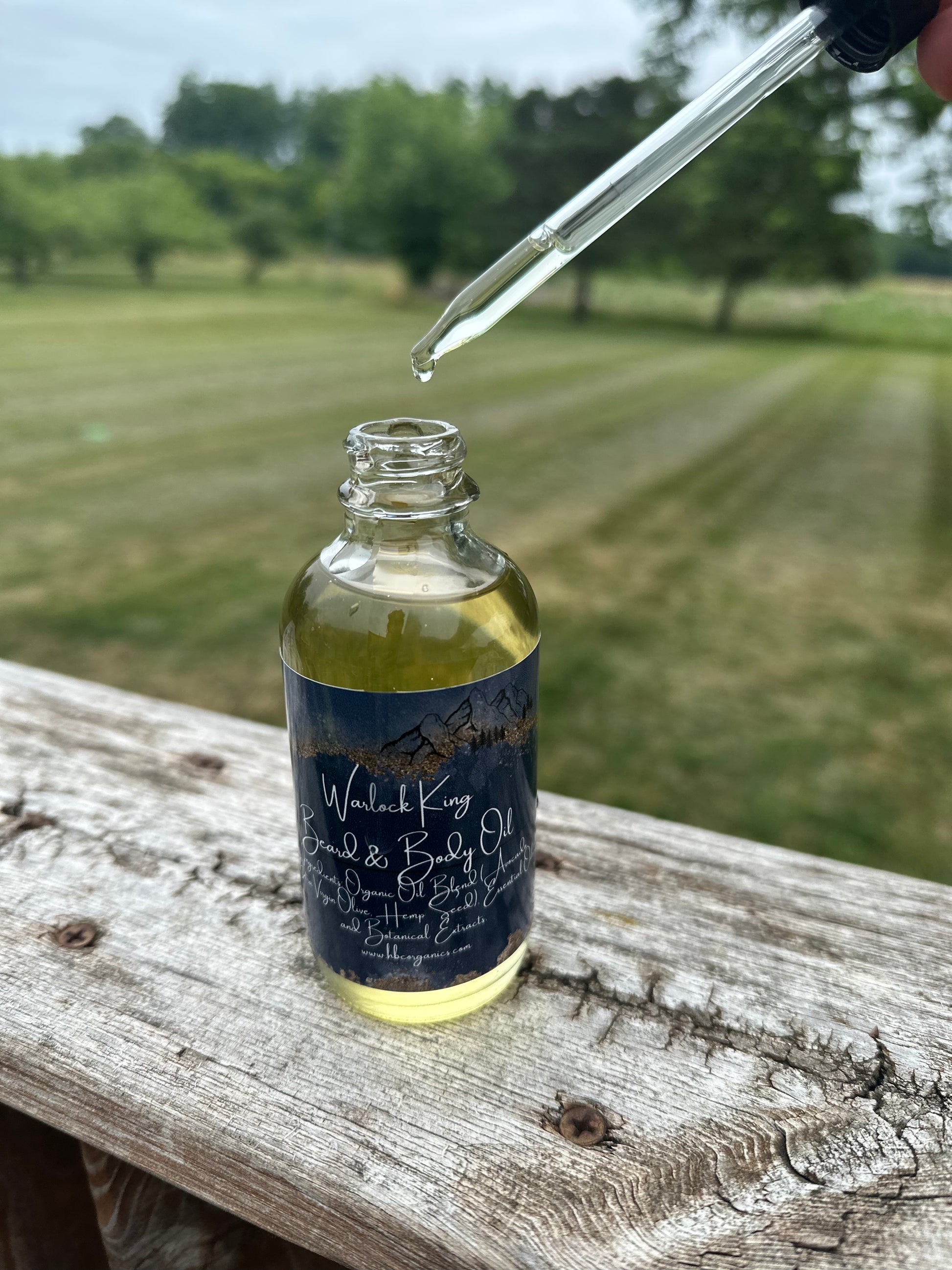Our customers are loving our multipurpose oils and we are back again with a new blend that is quickly becoming a fan favorite. The Warlock King Beard and Body oil works wonders on softening even the most rough of beards but also softens and soothes the skin after shaving, on the arms, and the body.