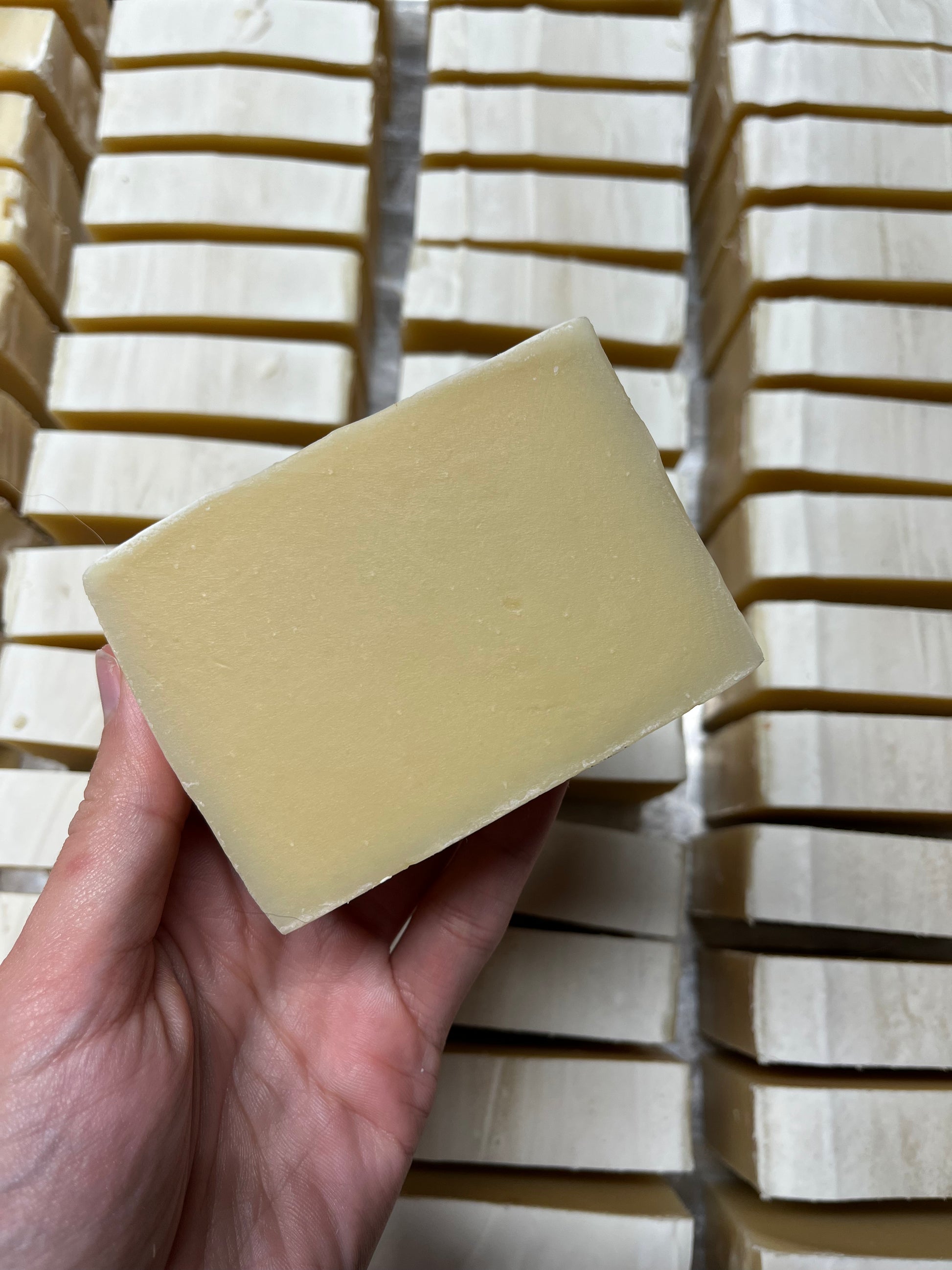 Ingredients: Organic Saponified Oils (Extra Virgin Olive, Virgin Avocado, Unrefined Babassu, Cocoa Butter), Raw/unfiltered Apple Cider Vinegar, Calendula Extract.